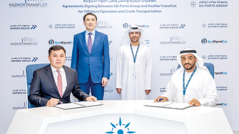 وقّعت مجموعة موانئ أبوظبي اتفاقية شراكة مع «كي إم تي إف» (كازمورترانسفلوت)، شركة الخدمات البحرية واللوجستية التابعة للشركة الكازاخستانية الوطنية للنفط (كاز موناي غاز)، تنص على إطلاق مشروع مشترك حصري تتوزع حصص ملكيته بنسبة 51% لـ«موانئ أبوظبي»، و49% لـ«كي إم تي إف»، بهدف تقديم الخدمات البحرية والشحن لشركات الطاقة العاملة في منطقة بحر قزوين والبحر الأسود.