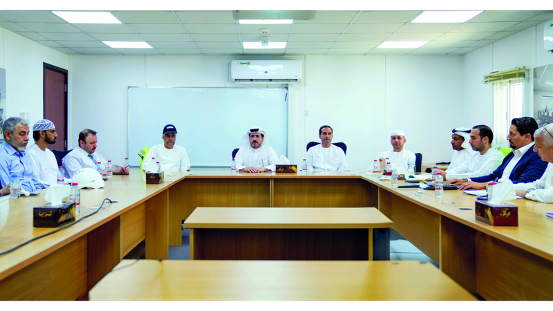 مسؤولو هيئة كهرباء ومياه دبي خلال متابعة تطورات سير العمل في مشروع مبنى «الشراع». من المصدر