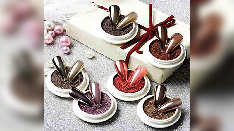تتألق الأظافر بمظهر الكروم (Chrome Nails) في 2023، لتمنح المرأة إطلالة متلألئة تأسر الألباب. وتتلألأ الأظافر هذا العام ببريق اللون الفضي أو درجات الباستيل الحالمة باللون الوردي أو البنفسجي أو الأزرق السماوي. ويتم تحقيق تأثير الكروم البرّاق بواسطة ما يعرف «ببودرة الكروم» ذات المظهر الميتالك اللامع.