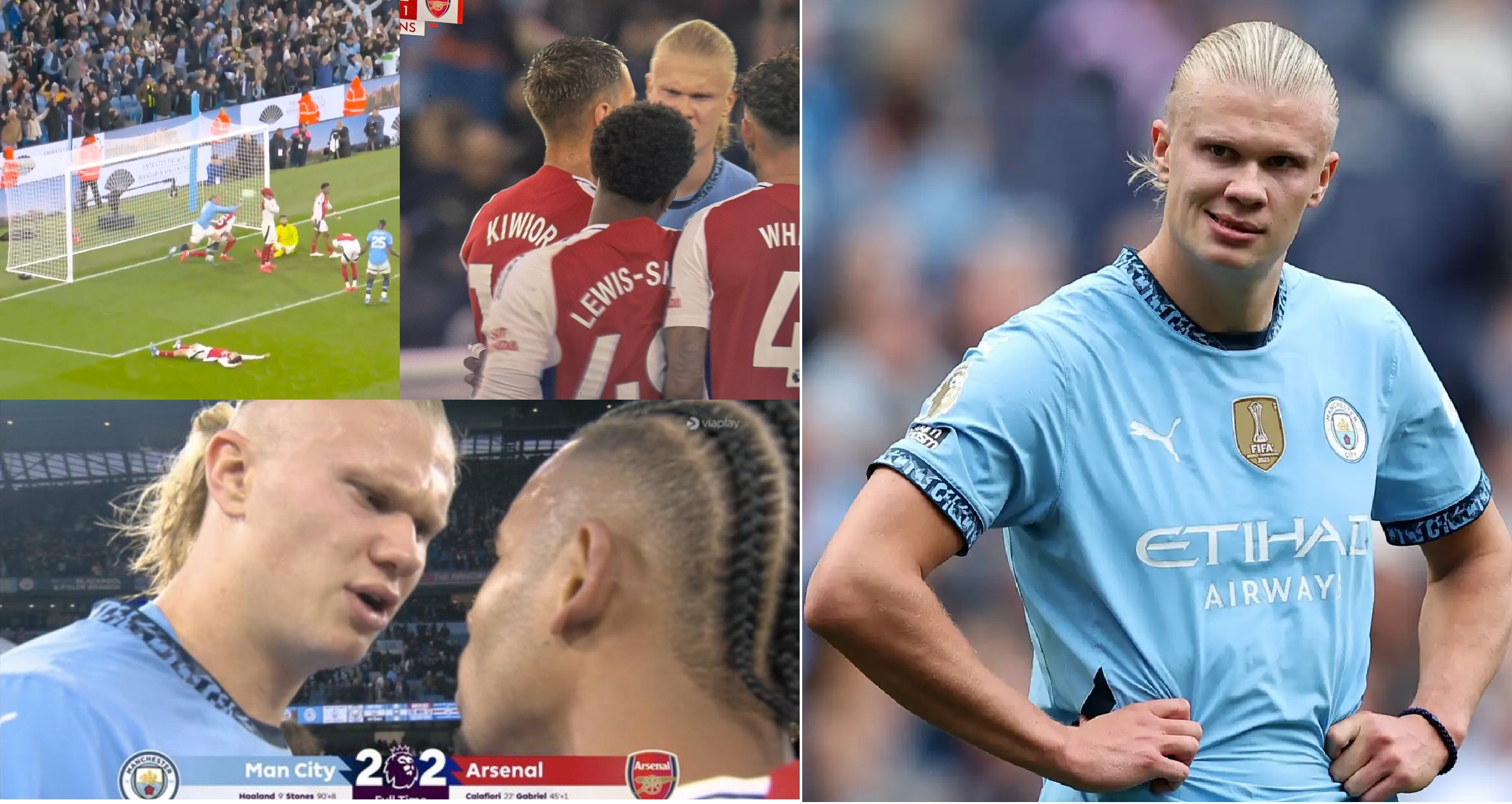 وكشفت مقاطع مصورة بأن هالاند اعتدى على مدافع أرسنال غابرييل عقب تسجيل زميله جون ستونز هدف التعادل القاتل 2-2 في الوقت المحتسب بدلا من الضائع، إذ أمسك الكرة وضربها متعمداً برأس اللاعب وسط حالة من الغضب سيطرت على لاعبي أرسنال.