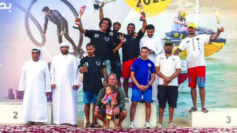 أبطال الإمارات في «الفلاي بورد» يعتلون منصة التتويج. من المصدر