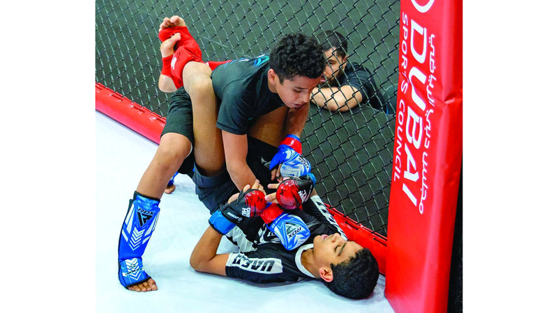 من نزالات النسخة الثالثة لبطولة الإمارات الوطنية للفنون القتالية المختلطة. وام