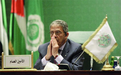 عمرو موسى طالب القمة بضرورة التعامل مع كل التحديات ومواجهة احتمال فشل السلام. أ.ف.ب