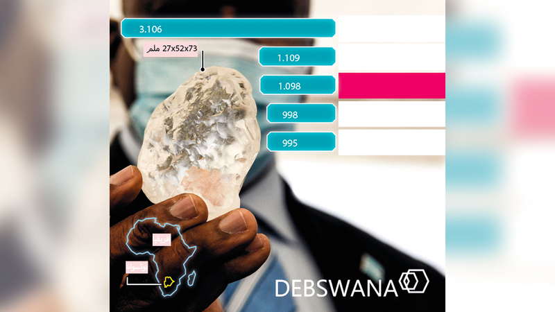 الماسة التي يبلغ وزنها 1.098 قيراط، واكتشفتها شركة دبسوانا في بوتسوانا، ربما تكون ثالث أكبر ماسة من نوعها يتم اكتشافها على الإطلاق.