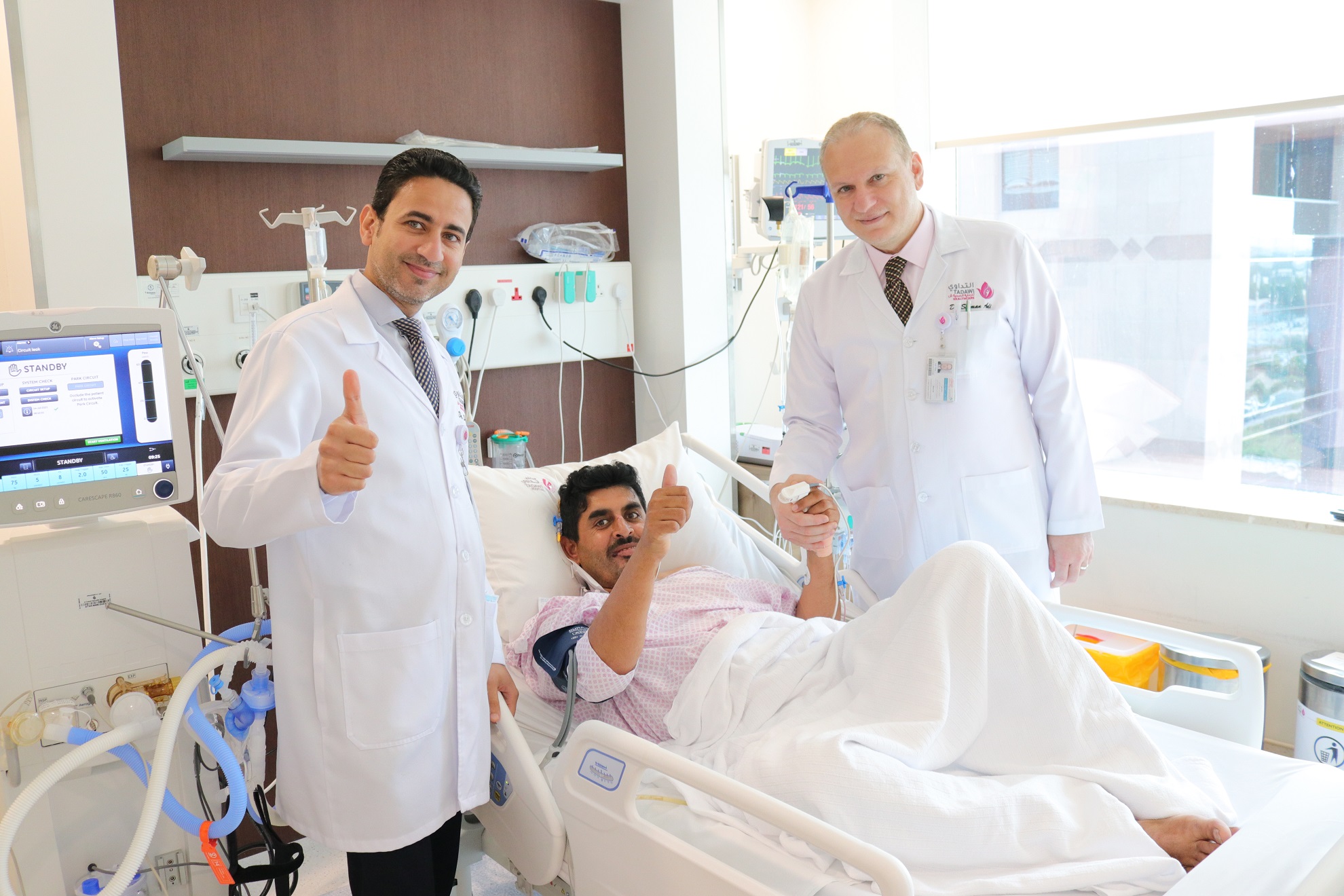 وقال رئيس قسم القلب واستشاري طب القلب التداخلي بالمستشفى الدكتور سلمان عدي إن حالة المريض كانت حرجة جدا، وكانت نسبة الوفاة عالية جدا بسبب ضعف العضلة القلبية والقصور التنفسي، ما تطلب تدخلا طبيا سريعا لإنقاذ حياته واستعادة النبض، لذلك أجرى الطاقم الطبي عملية قسطرة قلبية ورئوية في الحال، ثم نقل المريض للعناية المركزة تحت الرقابة الطبية الكاملة، ووضع تحت جهاز التنفس الصناعي، حتى استقرت حالته واسترد وعيه.