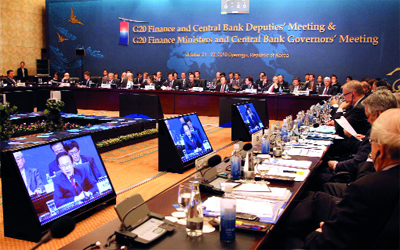 ويجتمع وزراء مالية وحكام البنوك المركزية لأكبر 20 اقتصاداً في العالم في جيونغجو، جنوب شرق كوريا الجنوبية، حتى مساء اليوم في مسعى إلى تقرير هدنة في حرب العملات القائمة منذ سبتمبر الماضي، التي تهدد الانتعاش العالمي.