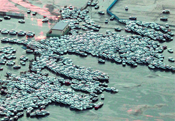 سيارات كانت معدّة للتصدير في إحدى مدن شمال اليابان قبل أن تضربها موجة تسونامي. أ.ف.ب