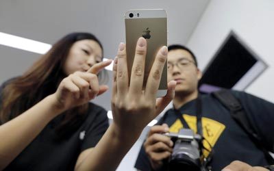«آي فون 5 إس» أنعش الآمال في تقبل الجمهور أساليب جديدة في التعرف إلى هوية المستخدم للهاتف. رويترز