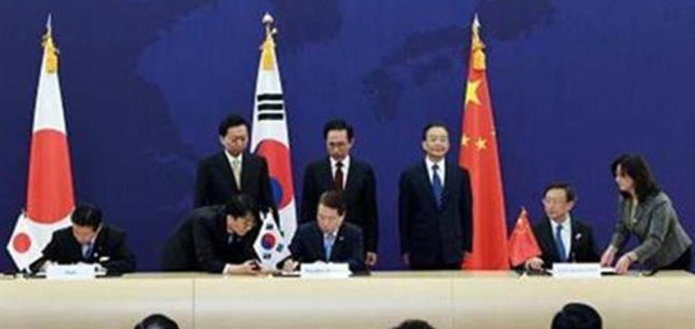يشار إلى أن كوريا الجنوبية والصين واليابان، تجري مفاوضات اتفاقية التجارة الحرة منذ نوفمبر عام 2011.