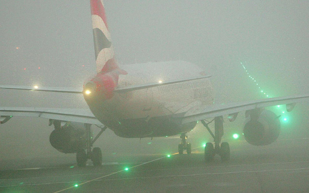 ألغى مطار "هيثرو" في لندن، عشرات الرحلات بسبب كثافة الضباب في البلاد.
