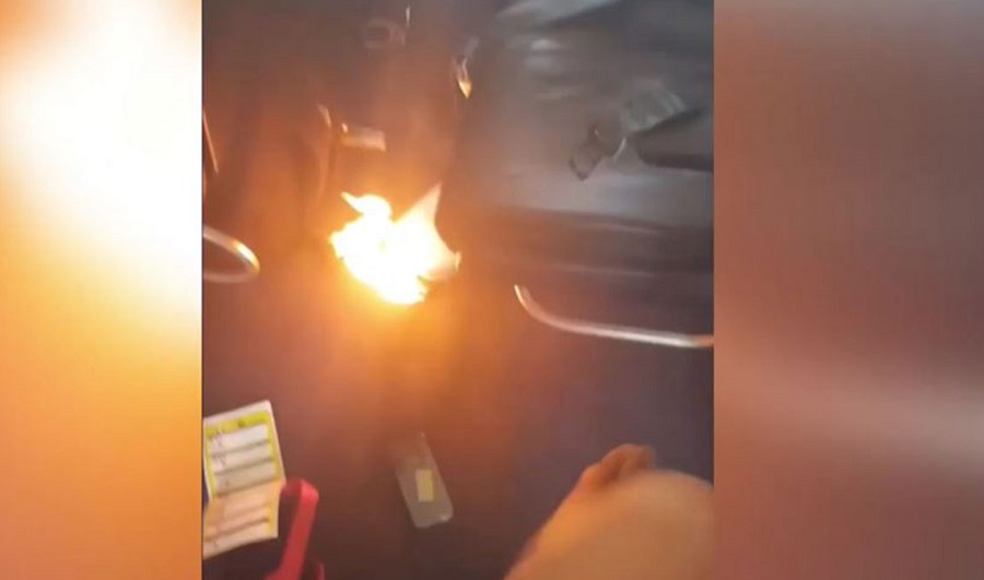 وأظهرت لقطات فيديو انفجاز البطارية فضلاً عن عملية إخلاء الطائرة.