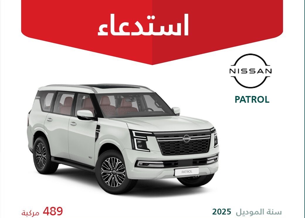 أعلنت وزارة التجارة السعودية، اليوم السبت، عن استدعاء 489 مركبة نيسان باترول موديل 2025.