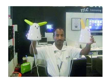 في كل ركن من أركان معرض «جيتكس» هناك شاشة تلفزيون اوجهاز كمبيوتر، أو هاتف محمول، أو طابعة، أو ماسح ضوئي ضمن ٢٥ الف سلعة ومنتج الكتروني تتسابق على جذب انتباه الزائرين، وآخر شيء يتوقعه الزائرون أن يجد أرانب. لكن سرعان ما يكتشف الزائرون أن هذه الأرانب ليست سوى أرانب الكترونية، لا تأكل ولا تشرب، ولا تحتاج إلى جزر أو خس، وكذلك إلى حظيرة لتربيتها.
