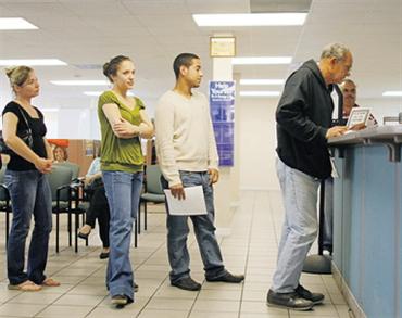 مجموعة من الأميركيين يقفون انتظاراً لدورهم للتقدم لوظيفة. غيتي