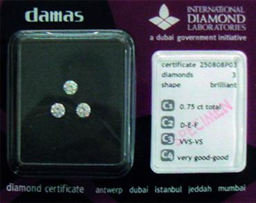 الماسات تحمل شهادة مصدّقة من المختبر الدولي للألماس. داماس