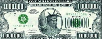 صورة افتراضية لورقة المليون دولار التي لم تصدر رسمياً عن البنك الفيدرالي الأميركي. الإمارات اليوم