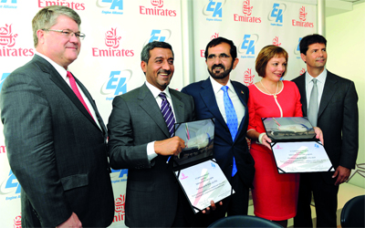 ووقّع سموّ الشيخ أحمد بن سعيد آل مكتوم، الرئيس الأعلى الرئيس التنفيذي لطيران الإمارات والمجموعة، الاتفاقية الأولى مع رئيس «بوينغ للطائرات التجارية»، عضو مجلس إدارتها المنتدب، جيم ألبو؛ فيما وقّع الثانية مع رئيسة «إينجن ألاينس»، ماري إيلين جونز.