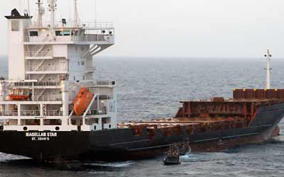 تبحر سفينة الشحن الألمانية (ماجلان ستار) إلى سواحل إمارة دبي بعد تحريرها من الخاطفين الصوماليين صباح أمس الخميس على يد مجموعة من مشاة البحرية الأميركية قبالة السواحل الصومالية.