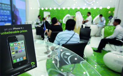 مراكز «اتصالات» شهدت تهافتاً من قبل المتعاملين للحصول على «آي فون 4». تصوير: دينيس مالاري