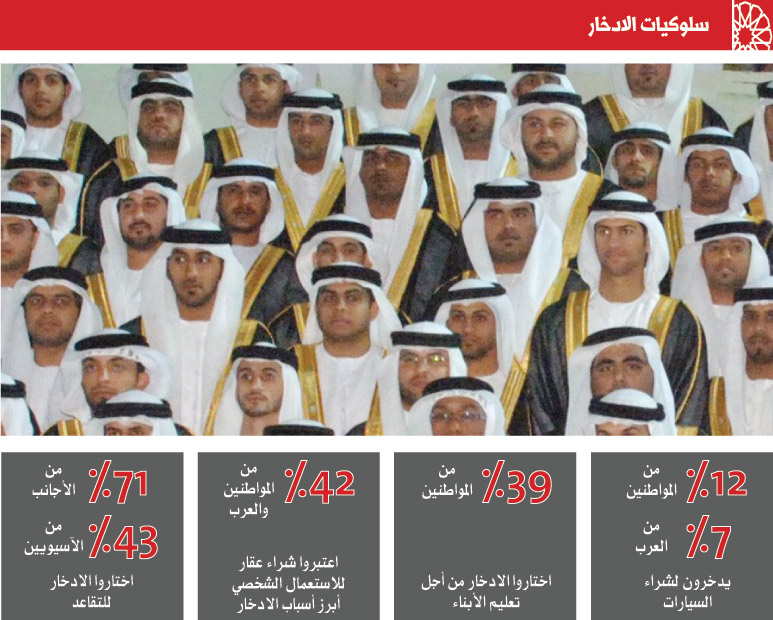 وأشارت إلى أن «نسبة 42٪ من المواطنين والمقيمين العرب اعتبروا أن أبرز أسباب الادخار بالنسبة لهم تتركز في أولوية شراء عقار للاستعمال الشخصي، بينما اختار 71٪ من الأجانب، و43٪ من الآسيويين الادخار للتقاعد».