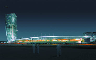 وستمتد المظلة الجديدة فوق المنصة التاريخية وتتصل ببرج «كابيتال غيت»، البرج المائل الذي يجرى تطويره من قبل شركة أبوظبي الوطنية للمعارض بجوار أرض المعارض، إذ سترمز من خلال ذلك إلى الصلة القوية بين مفاهيم التقاليد والحداثة المتجسدة في منهجية التطوير في العاصمة أبوظبي.