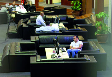 المتعاملون انصرفوا عن متابعة السوق ما انعكس على تدني معدلات التداول بصورة ملحوظة. تصوير: دينيس مالاري