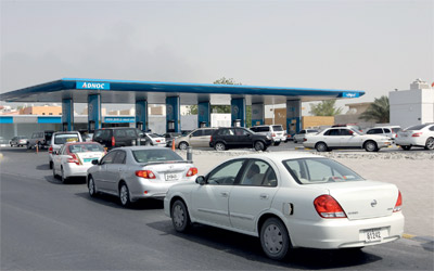 الإقبال الشديد على «أدنوك» في الشارقة سبب نقصاً جزئياً في الوقود فيها. تصوير: أشوك فيرما