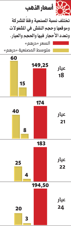 وارتفع سعر الغرام عيار «21» قيراطاً إلى 174 درهماً، أمس، بزيادة قدرها 1.25 درهم على سعره أول من أمس، فيما ارتفع سعر الغرام عيار «18» قيراطاً إلى 149.25 درهماً أمس، بزيادة قدرها درهم واحد على سعره أول من أمس. وقال مسؤول المبيعات في محل «كانز» للمجوهرات والمشغول، نيشيل دانا، إن «هناك تراجعاً وبطئاً كبيرين في المبيعات خلال أول يومين من شهر رمضان، خصوصاً مع الارتفاعات المستمرة في أسعار الذهب، التي تنخفض بشكل طفيف ليوم أو اثنين ثم تعاود الصعود بمعدلات أكبر، وهو ما لا يشجع المستهلكين على الإقبال على الشراء».