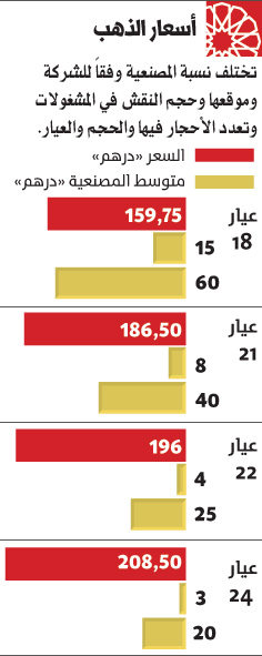 وبلغ سعر الغرام عيار 21 قيراطاً 186.5 درهماً بانخفاض قدره 25 فلساً، بينما بلغ سعر الغرام عيار 18 قيراطاً 159.75 درهماً، بتراجع قدره 50 فلساً خلال تعاملات الأسواق، أول من أمس.