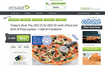 عقدت مؤسسة الإمارات للاتصالات «اتصالات» مع موقع التعاملات اليومي الإلكتروني «كوبون. كوم» شراكة لتقديم المزيد من العروض للعملاء المشتركين في برنامج مكافآت ولاء عملاء اتصالات «مزيد».