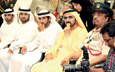 حضور الحفل كان صاحب السمو الشيخ محمد بن راشد آل مكتوم، نائب رئيس الدولة رئيس مجلس الوزراء حاكم دبي، افتتح، صباح أمس، بحضور الفريق أول سمو الشيخ محمد بن زايد آل نهيان، ولي عهد أبوظبي نائب القائد الأعلى للقوات المسلحة، وسمو الشيخ حمدان بن محمد بن راشد آل مكتوم، ولي عهد دبي، وسمو الشيخ مكتوم بن محمد بن راشد آل مكتوم، نائب حاكم دبي، وأولياء عهود ونواب حكام الإمارات، والملك خوان كارلوس ملك المملكة الإسبانية، الدورة الـ12 من «معرض دبي الدولي للطيران 2011» الذي تستمر فعالياته حتى 17 من نوفمبر الجاري. وحضر حفل الافتتاح كذلك سمو الشيخ طحنون بن محمد آل نهيان، ممثل الحاكم في المنطقة الشرقية، وسمو الشيخ عبدالله بن زايد آل نهيان، وزير الخارجية، وسمو الشيخ أحمد بن سعيد آل مكتوم، رئيس هيئة دبي للطيران الرئيس الأعلى لمجموعة «طيران الإمارات» رئيس اللجنة العليا المنظمة للمعرض، وسمو الشيخ ماجد بن محمد بن راشد آل مكتوم، رئيس هيئة دبي للثقافة والفنون، وسمو الشيخ منصور بن محمد بن راشد آل مكتوم، والشيخ نهيان بن مبارك آل نهيان، وزير التعليم العالي والبحث العلمي، والأمير سلمان بن حمد آل خليفة، ولي عهد البحرين، إضافة إلى عدد من الشيوخ والوزراء، ورئيس أركان القوات المسلحة، وكبار قادة ضباط أفرع القوات المسلحة، وقادة الأجهزة الشرطية والأمنية في الدولة، ووزراء الدفاع في عدد من الدول الشقيقة والصديقة، وحشد من الضباط العرب والأجانب، وممثلي شركات الطيران المحلية والعربية والأجنبية. |