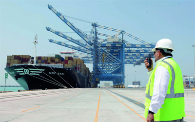 الميناء استقبل السفينة «م.إس. سي باري» القادرة على نقل 14 ألـــــــــــــــــــــــــــــــــــــف حاوية نمطية. تصوير: إريك أرازاس