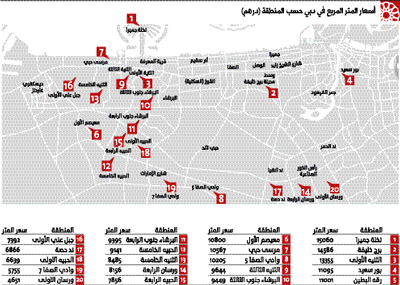 إلى ذلك، أظهرت بيانات صادرة عن دائرة الأراضي والأملاك في دبي بلوغ أسعار المتر المربع في مختلف مناطق دبي مستويات جاذبة، مشيرة إلى أن كم ونوع التصرفات والأسعار التي سجلتها الدائرة تعكس انتعاشاً متصاعداً ونمواً في أداء السوق العقارية في الإمارة، الأمر الذي ساعد على عودة حركة التداولات العقارية، وتعافي السوق.