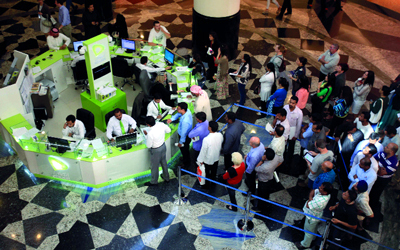 إقبال كبير للتسجيل في مراكز «اتصالات» أمس. تصوير: باترك كاستيللو