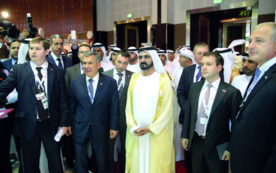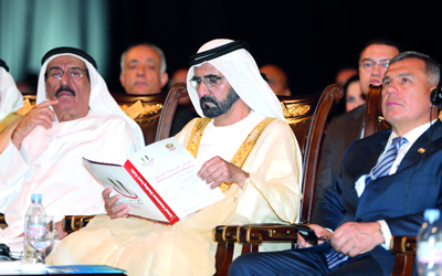 حضر صاحب السمو الشيخ محمد بن راشد آل مكتوم، نائب رئيس الدولة رئيس مجلس الوزراء حاكم دبي، الجلسة الافتتاحية لـ«ملتقى الاستثمار السنوي الثالث»، الذي تنظمه وزارة الاقتصاد في مركز دبي التجاري العالمي على مدى ثلاثة أيام.