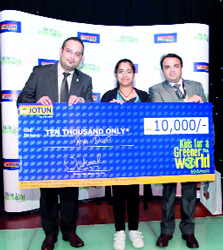 وزّعت شركة «جوتن للدهانات»، المتخصصة في مجال إنتاج وتوريد الدهان والطلاء وبودرة الحماية، جوائز المراتب الأولى لمسابقة الرسم «عالم أكثر اخضراراً»، التي تم تنظيمها أخيراً ضمن إطار المبادرة العالمية «أطفال لعالم أخضر»، التي يُعنى مركز «كيدزانيا» الترفيهي والتعليمي بتنظيمها، وتهدف إلى تثقيف الأطفال حول أهمية الحفاظ على البيئة.