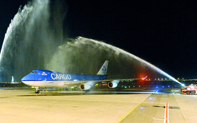 انضمت شركة «مارتن إير» للشحن التابعة للخطوط الجوية الفرنسية «كيه إل إم» إلى مطار أبوظبي الدولي، إذ وصلت الرحلة الأولى وسط احتفالات تضمّ التحية التقليدية برشاشات المياه.