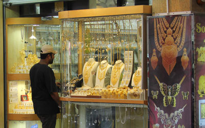 الأسواق تشهد بطئاً كبيراً في مبيعات المشغولات الذهبية. تصوير: عبدالله حسن