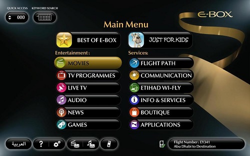 توفر الاتحاد للطيران باقة اتصال متكاملة تضمّ خدمات الإنترنت اللاسلكي وخدمات الهاتف المتحرك وخدمات البث المباشر لمحطات التلفزيون، تعززها حلول Etihad Wi-Fly التي تعتمد على مجموعة الاتصال من شركة باناسونيك أفيونيكس جلوبال وحلول الاتصال على متن الطائرة من "أون آير".