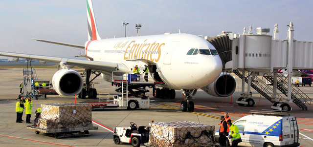 الإمارات تُعدّ مركزاً للشحن الجوي الدولي في ظل وجود شركات رئيسة مثل «طيران الإمارات». من المصدر