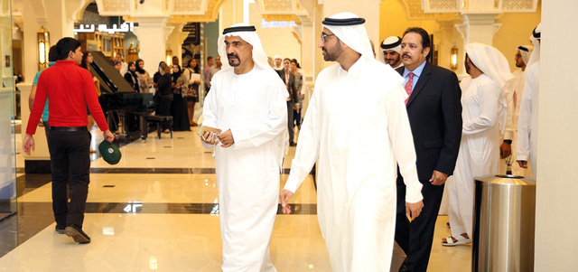 علي راشد لوتاه خلال جولة في «غولدن مايل غاليريا» أمس. من المصدر