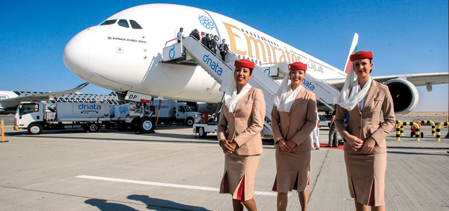 الناقلة تسلمت أخيراً الطائرة رقم 68 من طراز «إيه 380» بنظام الدرجتين الأولى والسياحية. تصوير: باتريك كاستيلو