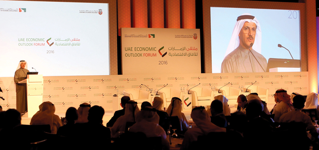 المنصوري أشار خلال الملتقى إلى أنه يجري العمل حالياً على إنجاز قانون الاستثمار الأجنبي بالتعاون مع المجلس الوطني الاتحادي. تصوير: نجيب محمد