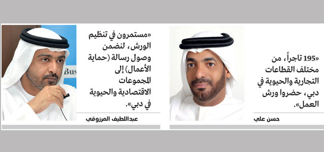 وقال مدير إدارة حماية الأعمال في قطاع الرقابة التجارية وحماية المستهلك بالدائرة، حسن علي، إن «القطاع استحدث إدارة حماية الأعمال لتنظيم العلاقة بين التجار، وعليه تم تنظيم مجموعة من ورش العمل، التي حضرها ما يزيد على 195 تاجراً، من مختلف القطاعات التجارية والحيوية في دبي».