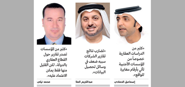 من جهته، أفاد المؤسس والمدير التنفيذي لشركة «الرواد»، إسماعيل الحمادي، إن تضارب البيانات والتوقعات الواردة في التقارير العقارية، خصوصاً في الأوقات التي تشهد هدوءاً وتباطؤاً في السوق، يصيب المستثمرين بالتردد، ما يؤثر في القرار الاستثماري، ويؤثر بالتالي في شركات التطوير العقاري، بسبب الضبابية التي تتركها هذه التقارير.