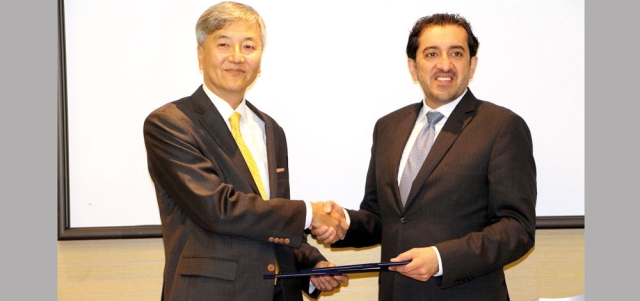 محمد الشحي عقب التوقيع على مذكرة التفاهم مع تشوي دونغيو. من المصدر