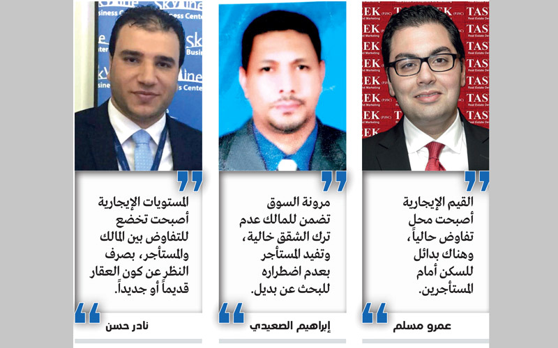 أما صاحب مجموعة «دريم لاند» لإدارة العقارات، إبراهيم الصعيدي، فاعتبر أن نحو 90% من عمليات تجديد العقود الإيجاراية حالياً تتم بخفض القيم الإيجارية بنسب تراوح بين 5 و10%، أو تثبيت القيمة عند المستوى الذي كانت عليه في عقد الإيجار القديم.