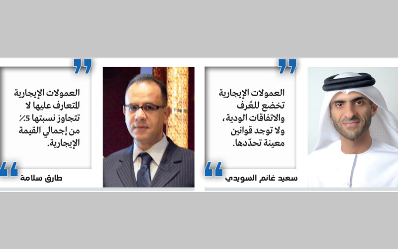 في السياق ذاته، قال مسؤول التأجير في شركة «الشامسي للعقارات»، طارق سلامة، إن «العمولات الإيجارية المتعارف عليها لا تتجاوز نسبتها 5% من إجمالي القيمة الإيجارية، وبالتالي على المستأجرين رفض أي مبالغات سعرية بالعمولات الإيجارية».