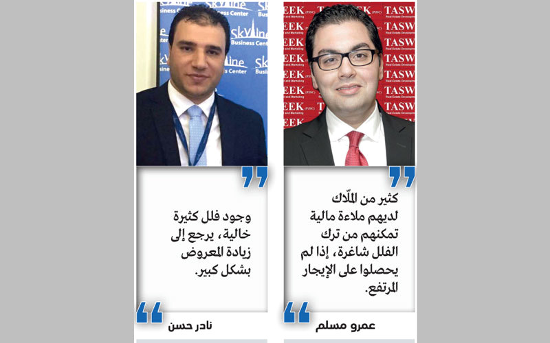 واتفق معه في الرأي، رئيس مجموعة «دريم لاند» لإدارة العقارات، إبراهيم الصعيدي، مؤكداً أن «هناك عدداً كبيراً من الفلل الخالية، التي لم يتم تأجيرها منذ أشهر عدة». وقال إن «عدداً من الملاك يفضلون تركها خالية عن تأجيرها بقيم مخفضة، على الرغم من انخفاض القيم الإيجارية بنسب تراوح بين 10 و20% خلال الأشهر الماضية».