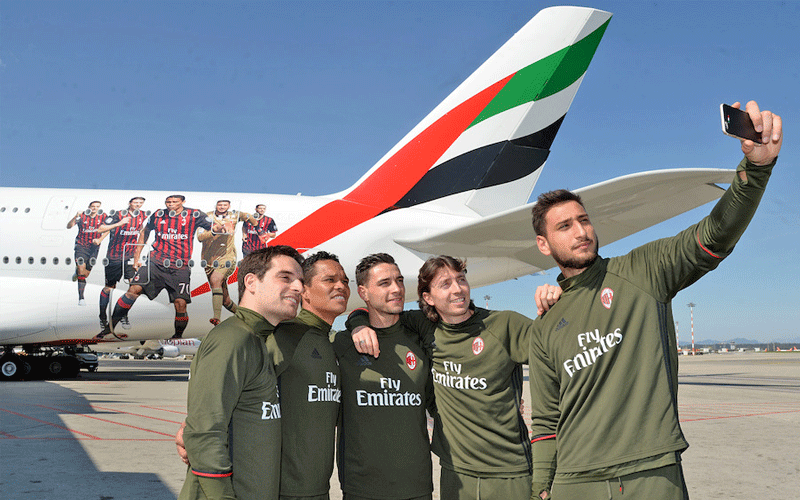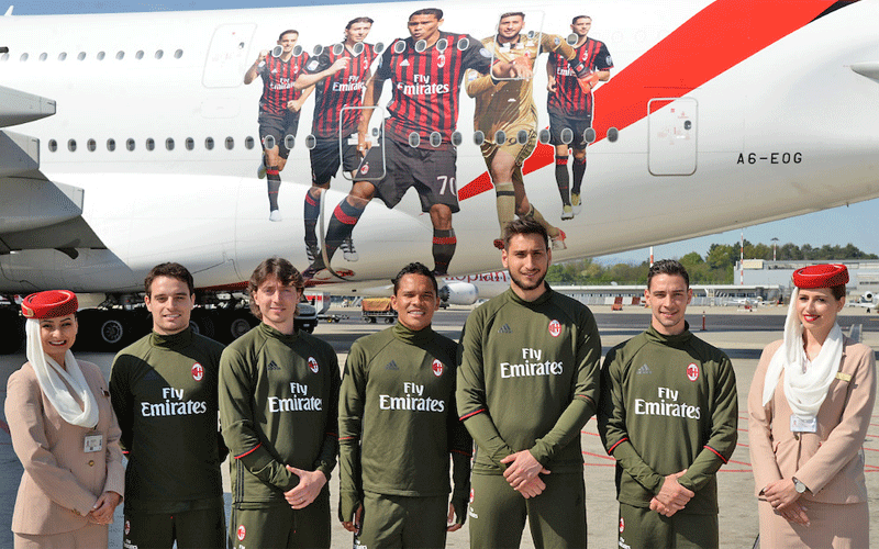 فاجأت طيران الإمارات و"إيه سي ميلان" المسافرين عبر مطار مالبينسا الدولي في "ميلانو" بكشف النقاب عن ملصق ضخم يصور لاعبي الفريق على إحدى طائرات الإمارات الإيرباص A380. وفي هذه المناسبة، طلب النادي من أشهر لاعبي الفريق الحضور لاستقبال الطائرة العملاقة ما استرعى انتباه كافة المتواجدين في المطار.